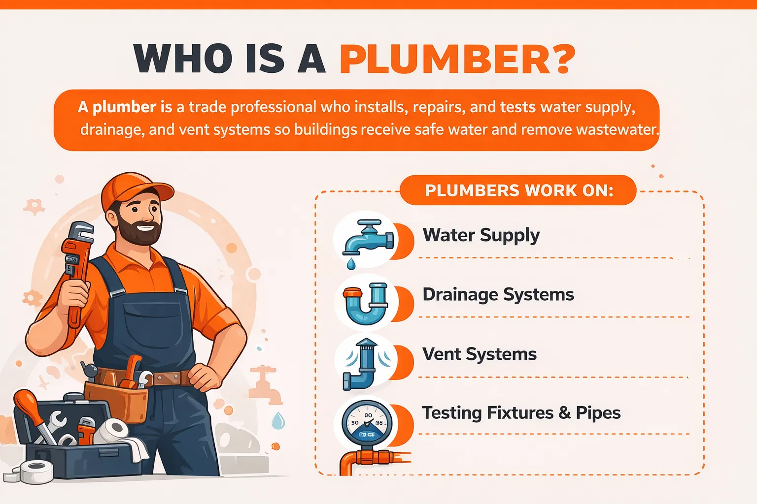 A plumber is a trade professional who installs, repairs, and tests water supply, drainage, and vent systems so buildings receive safe water and remove wastewater. In the Philippines, Republic Act No. 1378 and PRC describe plumbing work as consultation, design, installation, supervision, inspection, and acceptance of materials used for drainage, venting, and hot or cold water supply systems.